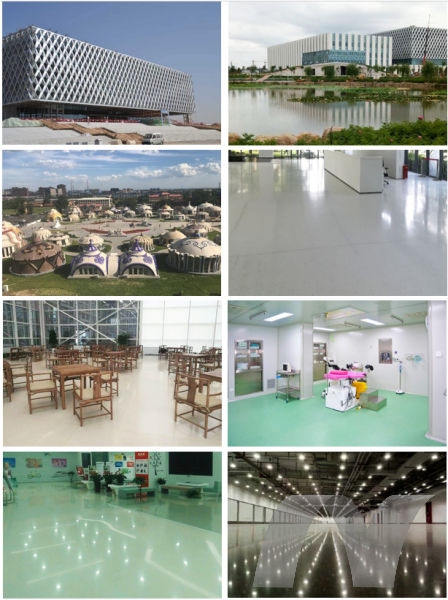 無機(jī)自流平地面,彩色磨石地坪,食品車間地坪、牲畜養(yǎng)殖地坪、垃圾轉(zhuǎn)運站地坪(耐有機(jī)酸侵蝕)。